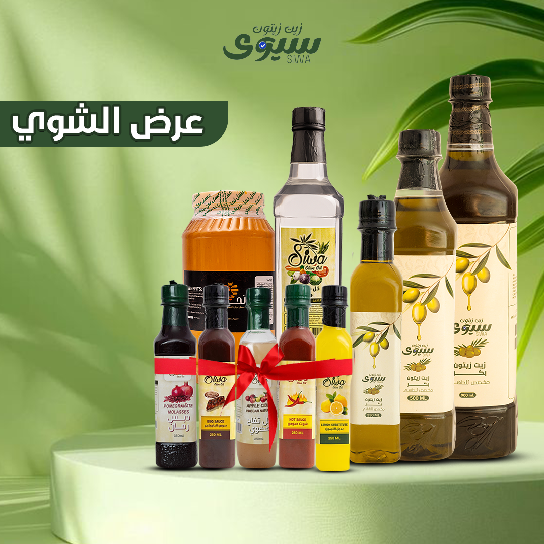 • (دبس رمان + باربكيو + خل ابيض لتر+ خل عضوي + خل بلسميك احمر + هوت صوص + بديل ليمون )